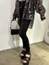 【モノトーンシャツコーデ】 -shirt-モノトーンの柄になるのでインナーがなんでも合わせやすいです。脇周りはゆったりしてるので抜け感のあるデザインになります。 -denim-伸縮性があり履きやすい。160cmでおへそが隠れる丈感です。お尻のポケット位置が高くてヒップアップ効果があります。 -shoes-傾斜が緩くて歩きやすいので長時間歩きやすい。合皮の素材なので馴染みやすいです。