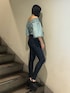 【デニム×厚底の美脚コーデ】 -tops-オフショルにも出来るトップスです。デザインがあるのでシンプルなボトムス合わせでもオシャレに着れます。胸周りは伸縮性がある為着脱しやすいです。 -denim-伸縮性はありますがきゅっと見せてくれる素材なので足全体を細く見せてくれます。太もも周りのハイライトが立体的に見せてくれて美脚に見えます。