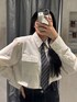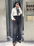 【トレンドのネクタイコーデ】 -tops-ネクタイが取り外しできます。ボトムがなんでも合わせやすいのと、アウターのインナーにもオススメです。 -denim-デニム生地が硬くないので履きやすいです。厚底合わせで脚長効果になります。デザインがあるのでシンプルなトップス合わせでもお洒落に着ていただけます -shoes-傾斜が緩く長時間歩きやすいです。合皮で柔らかい素材になってるので馴染むのが早いです。