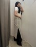 【デニム×ワンピースコーデ】 -tops-ピタッとしすぎないTシャツでシンプルですがダメージ風デザインなのでシンプルボトムスでもオシャレ見えします。 -one-piece-重ね着で着用できるワンピースです。素材がサラッと柔らかいです。 -denim-丈が長めのデニムで形がすっきり見えるワイドなのでスタイリッシュに見えます。