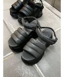 久道理沙(EMODA)のサンダル「エアバルキーソールパッファーサンダル」を使ったコーディネート