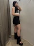 久道理沙(EMODA)のスカート「ハングポケットフレアミニスカート」を使ったコーディネート