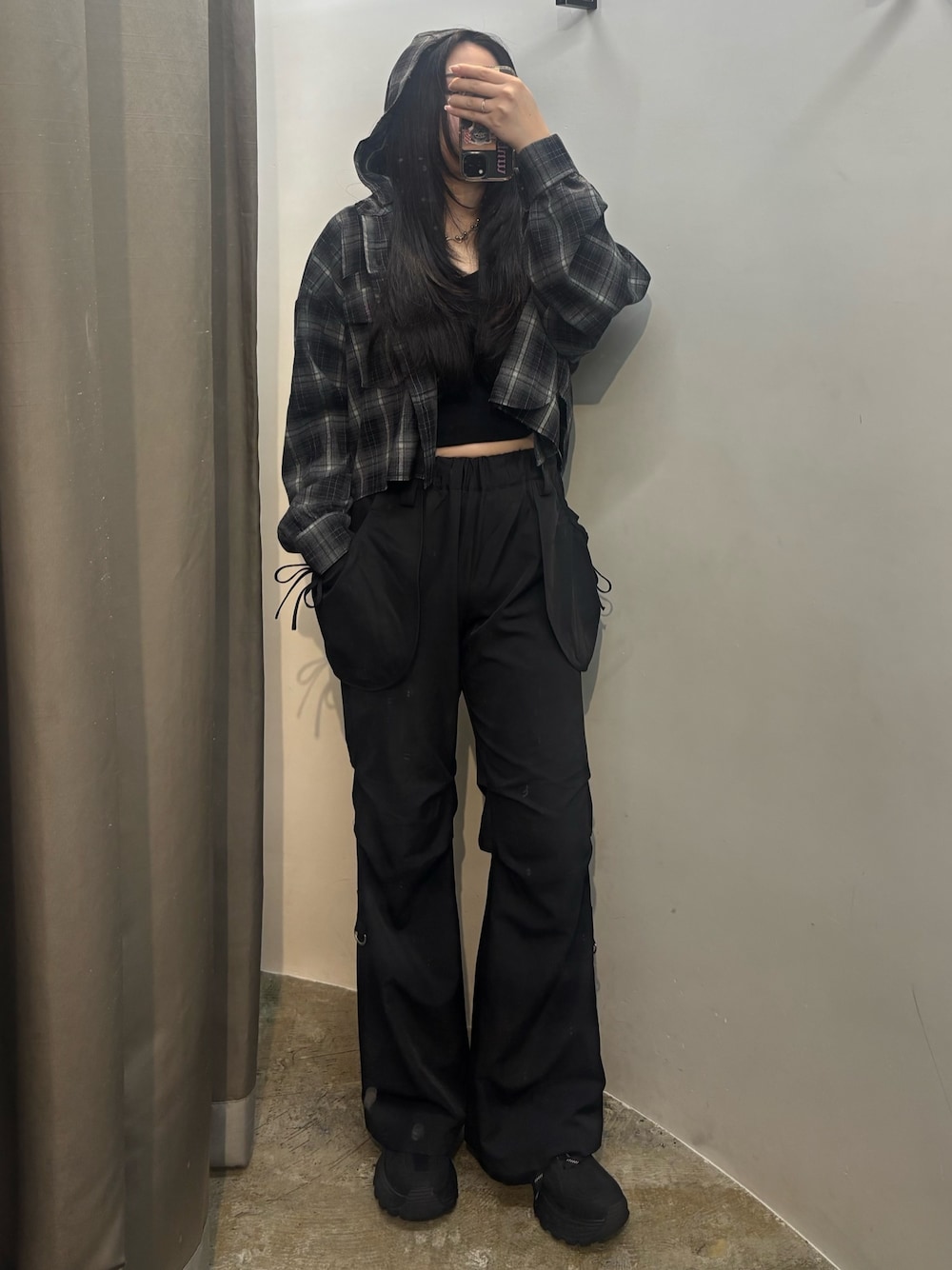 【秋初めのモノトーンコーデ】 -shirt-フードが取り外し可能です。 身幅がゆったりしてるのでインナーを組み合わせしやすいシャツです。 -pants-ウエストがゴムなので夏場でも動きやすく、サラッとしてるので着用しやすいです。160cmでスニーカーで長めに履けます。