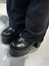 -tops-160cmでおへそ上の丈感で短めなのでハイウエストと合わせると腰の位置が高く見えます。スクエアネックなのでアウターを合わせた時にすっきり見えします。 -pants-ウエストがゴムなので動きやすく太もも上にデザインが入ってるのでラフに見えすぎないです。 -shoes-傾斜が緩く長時間歩きやすく、合皮なので馴染みやすいです。