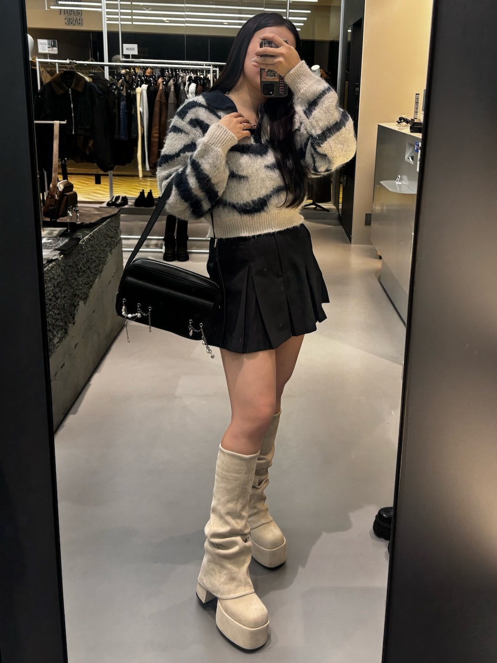 久道理沙(EMODA)のブーツ「ルーズフレアカバーフィットブーツ」を使ったコーディネート
