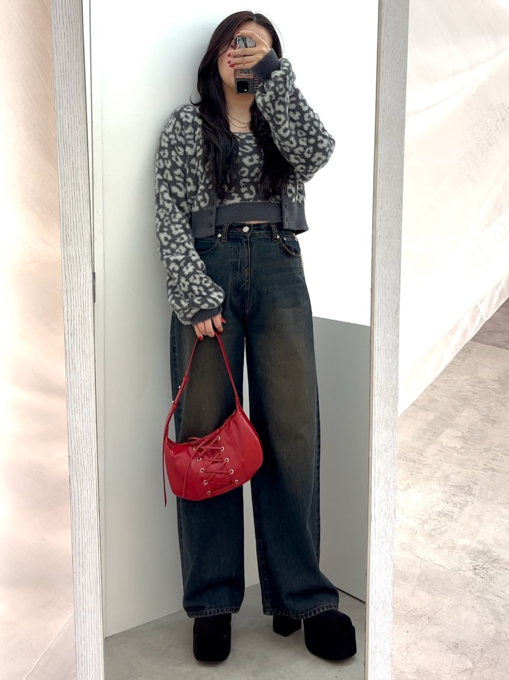 -tops-インナーがセットで付いていて、別々でも着用できます。伸縮性があり着用しやすいです。柄ですが派手すぎない色味で挑戦しやすいです。 -denim-お尻が上がって見えるポケットの高さです。リボンが取り外しできます。 -shoes-スウェード素材で傾斜が緩く長時間歩きやすいです。先端がスクエアなのでゆとりを持って履くのが正解です。