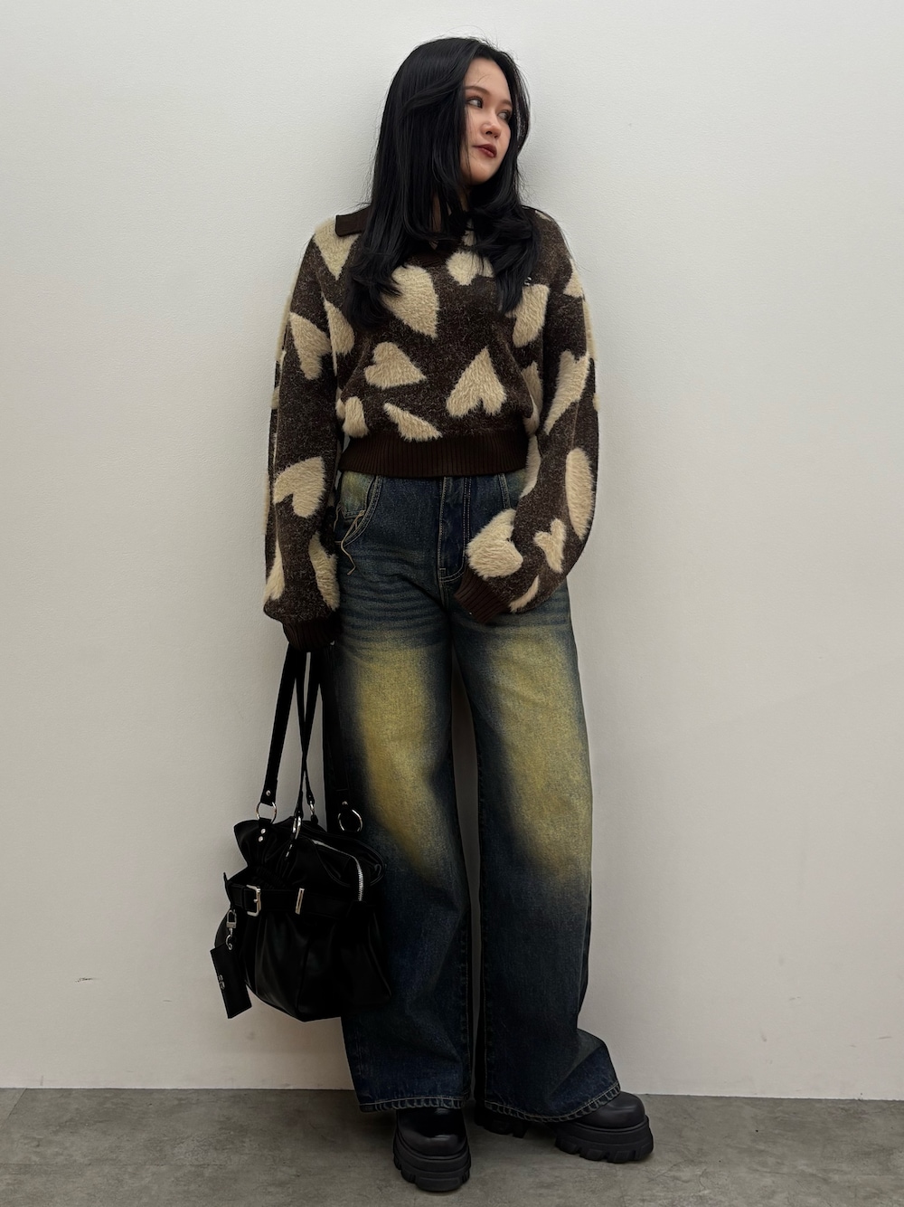 -tops-肌触りがよくチクチクしにくいです。ハイウエストじゃなくてもお腹が見えにくいのでボトムスに合わせて雰囲気を変えて着用できます。 -denim-太もも周りが細見えするデザインです。トップスがシンプルでもオシャレ見えします。 -shoes-傾斜が緩く長時間歩きやすいです。ソールがゴムなので傷つきにくいです。