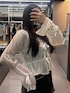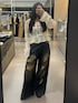-tops-ボリュームがあるシアートップスなのでシンプルすぎず、羽織でも着用可能です。 -denim-シンプルなシャツなのでデザインデニムと合わせました。夏はシンプルなTシャツと合わせてもカジュアルに見えます! -shoes-傾斜が緩いので長時間歩きやすいです。合皮で馴染みやすいです。
