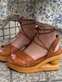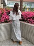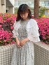 まるでエプロンのような花柄ワンピース。 ウエストのリボンは調節可能なので、ご自身の体型に合わせてシルエットを変えていただけます。 腕を出すことに抵抗がある方はカーディガンを羽織ったり、インナーにTシャツやブラウスを着ていただくのもおすすめです。 シューズは高さのあるサンダルを合わせて、スタイルアップしてみえるようにしました。 ヒール9.3cmで足がしっかり盛れる&太めのヒールで安定感があるので安心して履いていただけますよ♡