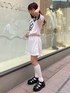 カジュアルな印象のリンガーTも、愛らしいterrierのおかげでかっこよくなり過ぎずに着ていただけます。 モノトーンなのでボトムを選ばないのも嬉しいポイント。 花柄のキュロットはウエスト部分がゴムになっており、ノンストレスな履き心地です♡ シューズはリンガー部分と同じブラックを選んで、コーデに統一感が出るようにしました。 ミニボトムを履く時は、厚底シューズが必須ですよ♡