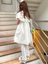 袖周りのデザインが個性的なミニワンピースは、身長154cmで膝がしっかり見える丈感です。 ミニ丈が苦手な方は、パンツとのレイヤードもおすすめです♡ 私が着用している花柄のレギンスはフレアに広がる形なので、足をすらっと細く見せてくれます。 カットソー生地で履き心地も100点満点! メタリックに輝くショルダーバッグは、マチがあるので見た目以上に大容量です。 コーデのアクセントになりますよ♡