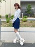 簡単にこなれ感が出るアンサンブル。 コットン素材でかっちりし過ぎずカジュアルに着用していただけます。 セットでの着用はもちろん、別々に着ることも出来るので着回し力も抜群です。 スカートはデニム素材ですが、ポケットのフリルやボタンのハートなど女の子らしい要素が満載なのでガーリーなトップスとの相性も〇ですよ!