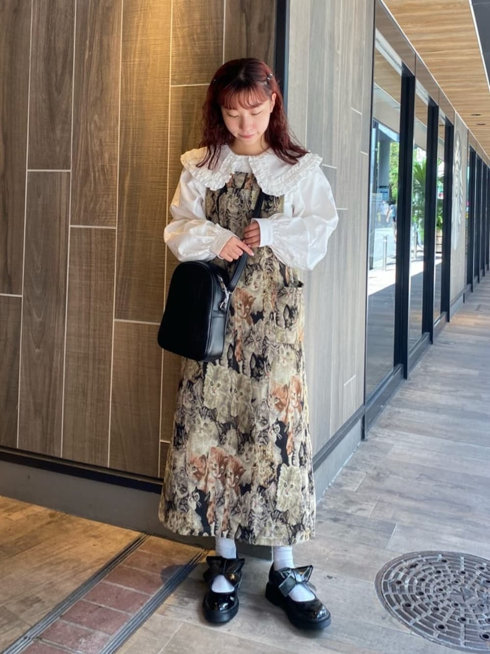 ねこちゃんだらけのインパクト大なジャンスカ。 ブラウス合わせでガーリーにも、カットソー合わせでカジュアルにも着ていただけます。 ショルダー部分で丈感の調整が可能なので、低身長さんでも安心して着用していただけますよ!