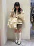秋のワントーンコーデ♡♡ カジュアルなアイテムもレースやフリルなど女の子らしいデザインのものを選べば、ガーリーなコーディネートに仕上がります。 ブルゾンは、merry jennyにならではのデザイン性の高い1着で360°どこから見てもかわいい! 袖周りはゆったりとしていて中に沢山着込んでももたつかないので、長い期間着用していただけますよ。 シューズは大きなリボンで足が細く見えるので、ミニ丈のお洋服を着る時におすすめ♡