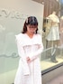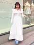 真っ白なワンピースにポイントでブルーのパンプスを合わせた、春のおでかけにぴったりなコーディネート♡ ワンピースはSとMの2サイズ展開で、私は身長154cmでMサイズを着用しています。 低身長さんでもずるっと長めの丈がお好みの方は、Mサイズでパンプス合わせもおすすめです✨
