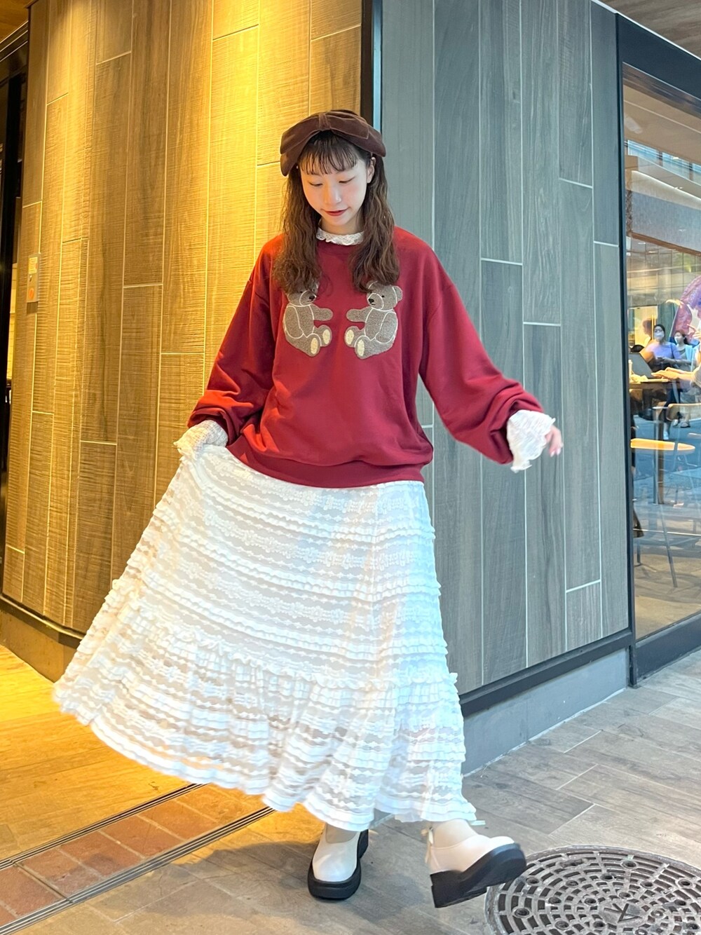kotochi(merry jenny)のスウェット「mocomoco bearスウェット」を使ったコーディネート