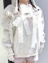 カットアウト部分にオーガンジーリボンが結ばれた、トレンド感満載のトレーナー。 裏起毛で暖かく着用していただけます。 私は柄物のトップスとレイヤードして、カット部分から柄が除くようにしてみました♡ ブラウスとかさねてガーリーにしてみたり、お気に入りのワンピースを覗かせてみたり…自分らしい着こなしを楽しんでください( ᐢ. ̫ .ᐢ )!