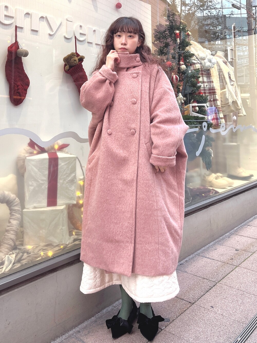 kotochi(merry jenny)のチェスターコート「スタンドカラールーズコート」を使ったコーディネート