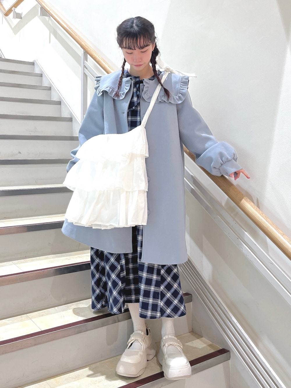 merry jennyといえばこれ!な、大人気のセーラーコート。 Aラインに広がるシルエットで、スタイルアップ効果抜群の1着です。 大きな襟で顔も小さく見せてくれますよ🙆🏻♀️ ワンピースはサイドゴム仕様で、しっかりとウエストマークしてくれます。 身長155cmで足首がしっかりと見える短めな丈感なので、低身長の方にも安心して着用していただけます♡