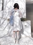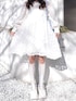 雲のようにふわふわのワンピース♡ しわを気にせず、気軽に着用していただけます。 袖は透け感があるので、暑い時期にも着用していただけますよ。 背中には大きなリボンが付いており、後ろ姿も抜かりなく可愛いです♡ ミニ丈には厚底シューズがマストです!