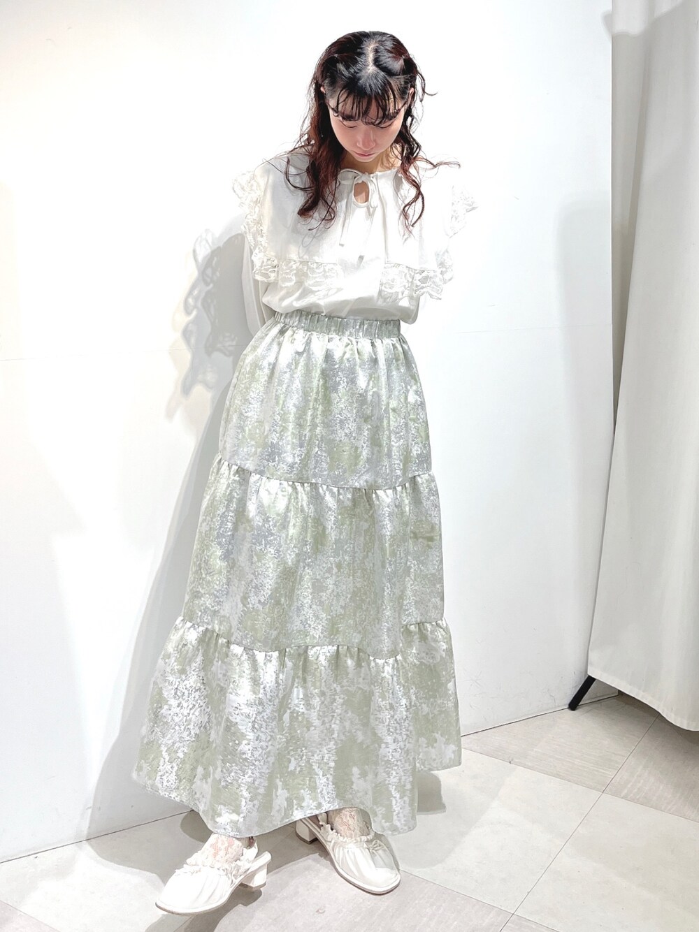 可愛くて楽ちんな、良いとこ取りTシャツ。 これでもか!というくらい大きな襟で、小顔効果や華奢見え効果も大です。 主役級のキラキラティアードスカートは、ウエスト部分がゴムになっておりストレスフリーな履き心地。 華やかになり過ぎないように、普段のお出かけにはカットソー等のカジュアルめなアイテムを合わせていただくのがおすすめです👼🏻