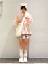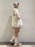 もふもふのわんちゃんが愛らしいスウェット♡🐶 身長155cmでおしりが完全に隠れる丈感なので、ショートパンツなどを合わせてミニワンピース風に着るのもおすすめです! 中にブラウスを着て襟を出すと、更にガーリーな雰囲気になりますよ♡ ミニスカートはバルーンシルエットで裾にボリュームがあるので、足を細く見せてくれます。 ミニ丈には厚底シューズがマストです!🫶🏻