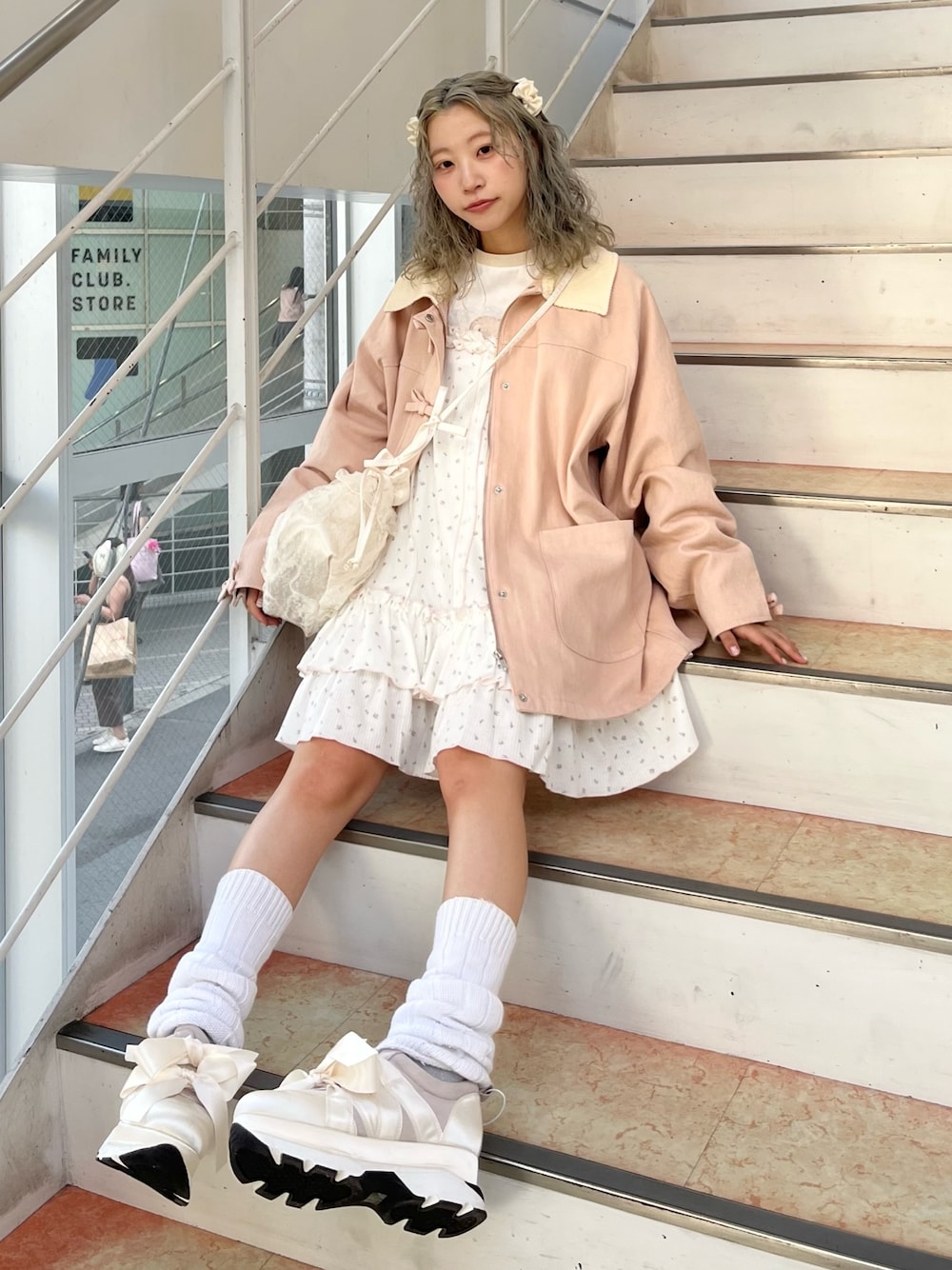 トレンドのハンティングジャケットも、リボンとピンク色でガーリーに♡ オーバーサイズなので中に沢山着込むことが出来、冬まで長く着用していただけます。 花柄のワンピースは肩紐で長さの調節が出来るので、お好きな丈感で着ることが出来ます。