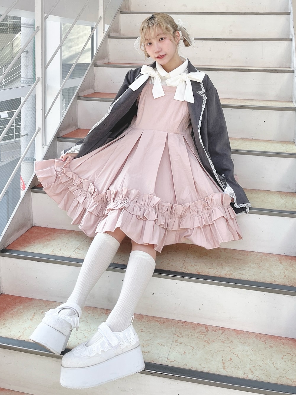 フリルいっぱいの、ドールワンピース👼🏻 裾に向かって広がるシルエットなので、足を細く見せてくれます! 後ろはゴムになっており、可愛い+楽ちんに着用出来ますよ。 ジャケットは1枚あると、ワンランク上のオシャレを楽しめるおすすめアイテム。 おしりまで隠れる丈感で、体型カバーもしてくれます! バッグは入り口がゴムになっており、ファスナーなどが無いので物の出し入れがしやすいところがお気に入りポイントです♫