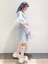 夏の参戦コーデ🧊🫧 ワンピースはチュールとリボンで華やかですが、Tシャツ生地で楽ちんに着用出来ます! ウエストもぐるりゴム仕様で、締め付け感無く🙆🏻♀️。 ミニ丈のときは、厚底シューズがマストです!♡