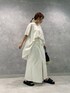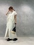 さらっとした着心地のTシャツはアシンメトリーなデザインで、袖の長さが左右違っておしゃれ◎落ち感のある素材で女性らしいシルエットに◡̈深めのスリットが入ったデニムスカートは足さばきもしやすくて夏に履いても涼しい*̣̩⋆̩*隙間から見える足が細く見えて美脚効果も。Aラインで広がり、台形のシルエットなのでヒップラインや腰はあまり強調されないのも嬉しいポイント!モノトーンコーデで大人カジュアルに♩︎
