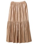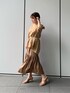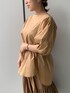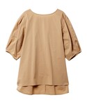 肘までかかる長さのパフスリーブが甘すぎず、女性らしい印象に。背中にもさりげなくデザインがあるので後姿も華やかに◎ハリのある素材が綺麗めスタイルにも使え、仕事と普段着と両立できます!チンツ加工のスカートと合わせて、素材を変えたワントーンコーデに仕上げました♪あえてインをせず、上からベルトをすることでウエストの位置を高く見せバランスをとりました☺︎セットアップ見えするおすすめコーディネートです✴︎