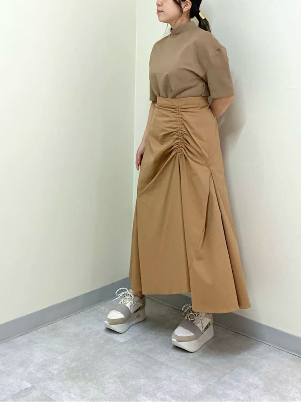 kaho(ELENDEEK)のワンピース「ドロストヘムドッキングワンピース」を使ったコーディネート