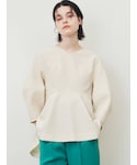 表面の凹凸が模様のようで、着るだけで華やかな印象に。ウエスト高め位置でのくびれシルエットがスタイルアップ効果抜群◎。マーメイドスカートを合わせて下重心のコーデでも、バランスが取りやすい着丈感です。(スカート02サイズ着用) ベージュのワントーンでまとめた、レディライクなスタイルに仕上げました。