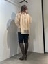 トップスは中の裏地が柔らかいニット素材で、上からシアーが重なったデザインのため温かく着用可能。柔らかいとろみのある生地感が、上品で女性らしい華やかな印象に仕上げてくれます。 ELENDEEKオリジナルのインディゴデニムをブーツインして、クールさをプラスした大人カジュアルコーデに仕上げました。