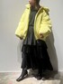 【ショート丈ダウンを使った綺麗めコーデ】CT→たぽっとオーバーサイズ感が可愛いレモンカラーの中綿コート。腰までしっかり隠してくれるので、ショート丈でもちゃんと暖かい◎。ファスナーを上まで閉めれば首も隠れるので、真冬まで長く着られます。裾のドロースト紐で絞ればスッキリとした印象で着られるので、小柄さんでもバランスが取りやすくおすすめです。中のコーデをブラックで引きしめた大人カジュアルスタイル。