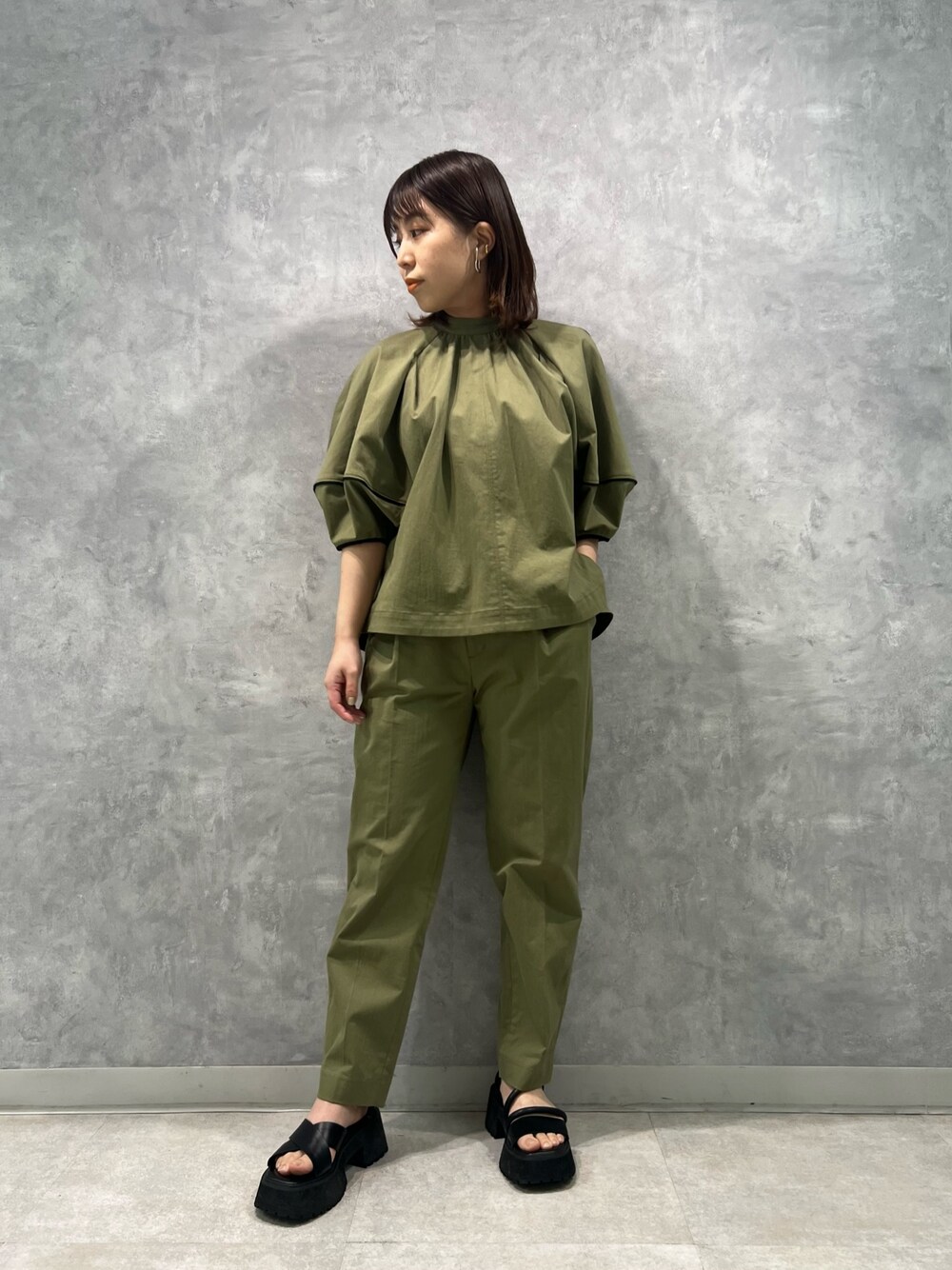 【セットアップコーディネート】ブラウス▶ハリのある素材感で袖の立体的なデザインがポイント✨ブラックのパイピングがアクセントに🖤前後2wayで羽織としても着られるので、夏の冷房対策や二の腕カバーに大活躍です! パンツ▶ハイウエストで脚長効果抜群◎!横にファスナーがあるため、形が崩れず、トップスをINして着る時も綺麗に履けます✨ ※サンプルのため02サイズ着用していますが、ウエストが細い方・コンパクトに履きたい方は01サイズがオススメです。 サンダル▶左右アシンメトリーでデザインが違うところがお洒落で可愛い✨厚底で身長が盛れるため、小柄さんにおすすめです!※足のサイズ23.5(幅広め)でサンプルの38は大きかったです。同じサイズの方は37がおすすめです。