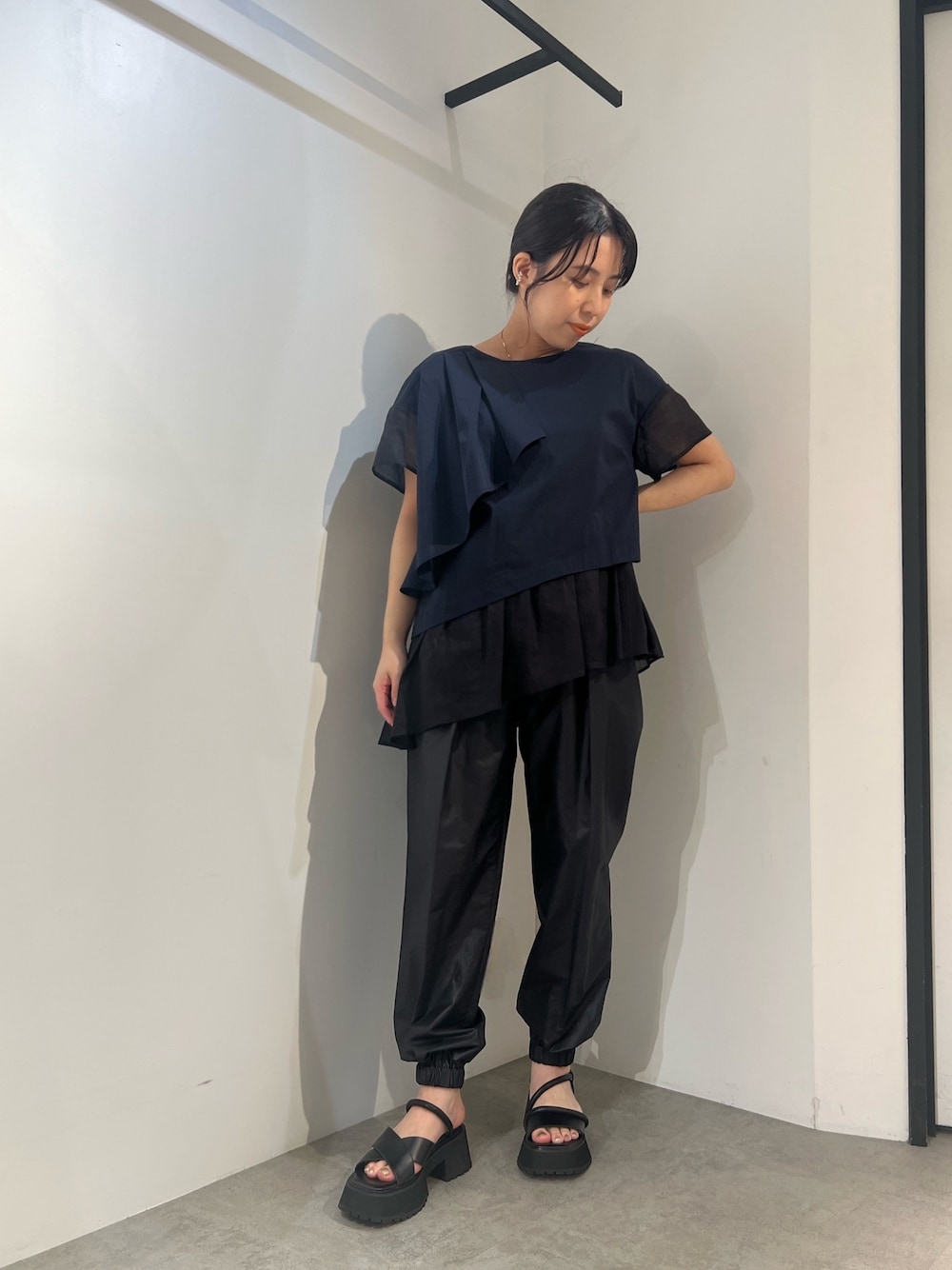 ブラウス▶袖と裾のがシアー素材になっていて、涼し気な印象のトップス🎐🫧1枚で着映え効果◎なので、夏にピッタリのアイテムです✨ パンツ▶薄い素材感で夏でもストレスフリーに履ける楽ちんパンツ!ハイウエストのデザインで脚長効果も🙆🏻♀️微光沢感があるので、キレイめコーデにもオススメです👍🏻 サンダル▶左右でデザインの違うサンダル👡今までありそうでなかった左右非対称のデザインが一際目を引いてオシャレ度をUPさせてくれます!固めのしっかりとしたソールで安定感も◎