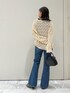 \\ 春ニット× フレアデニムコーデ // 美脚効果抜群!フレアデニムに、透かし編みニットを合わせた春コーデです❀ 透かし編みニットは、インナーを変えるだけで、真夏以外は着れますよ!春は ロンteeやタンクトップ、秋は ロンteeや薄手のニット、冬は タートルネックのニットや、ヒートテックで、季節に合わせて楽しんで頂けるitemです♪ フレアデニムは、膝の位置からフレアの広がりがあるので、更に脚長効果抜群です! カラーも濃いブルーなので、ぐっと引き締まって見える一本です☆ フレアデニムの時は、少しでもヒールのあるものを合わせて頂けるとより綺麗に見えるのでオススメです!