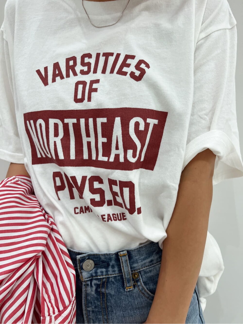 \\ ロゴtee × デニムコーデ // すっごく肌触りが良くて柔らかいteeと定番のデニム合わせが間違いなしコーデです♡" ロゴもヴィンテージ感がUngridらしくて可愛い! 日焼け対策や冷房避けにストライプシャツがオススメです♪