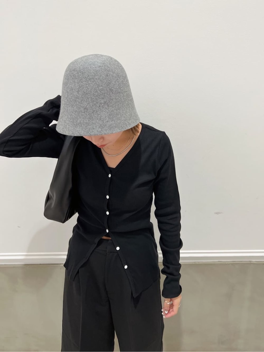 \\ 大人オールブラックコーデ // オーガニックコットンで作られた着心地◎のカーディガン、程よくフィット感があって、袖丈長めで腕をスッキリみせてくれます♪♪ 全部inしても可愛いですが、ボトムスは今季らしいハーフパンツで合わせているので、カーディガンの下から2番目までのボタンを外してあえて裾を出して着てます☺︎ フェルトハットもシルエット凄く綺麗ですっ☆"