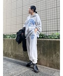 瀬川百花(Ungrid)のスウェットパンツ「RUSSELL別注 カレッジスウェットパンツ」を使ったコーディネート