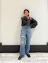 瀬川百花(Ungrid)のデニムパンツ「ハイウエストルーズクラッシュストレートデニム」を使ったコーディネート
