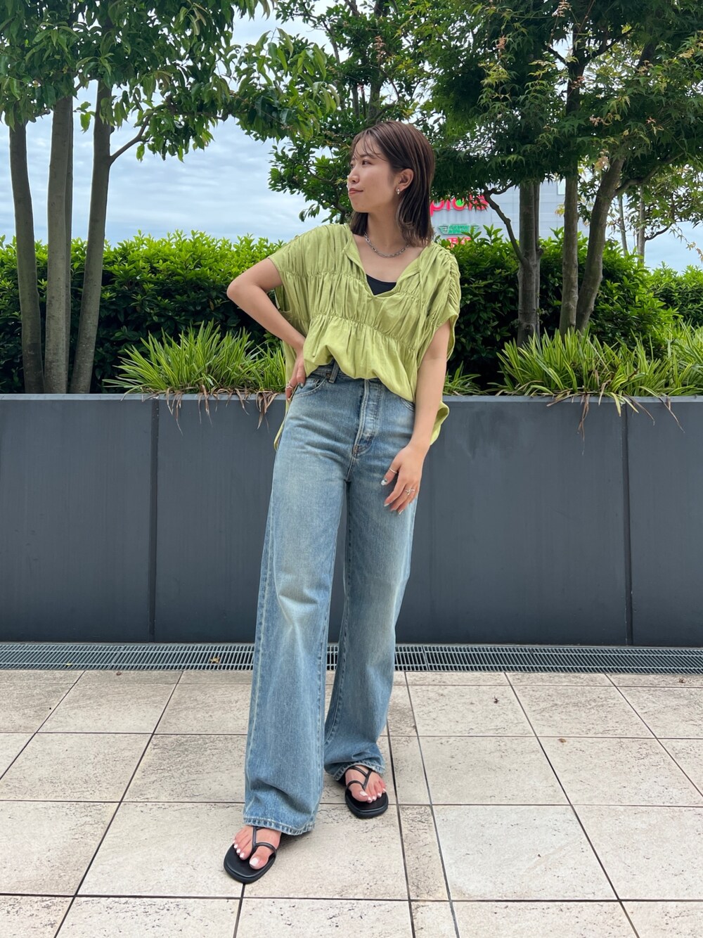 瀬川百花(Ungrid)のシャツ/ブラウス「リネン混ギャザーノースリブラウス」を使ったコーディネート