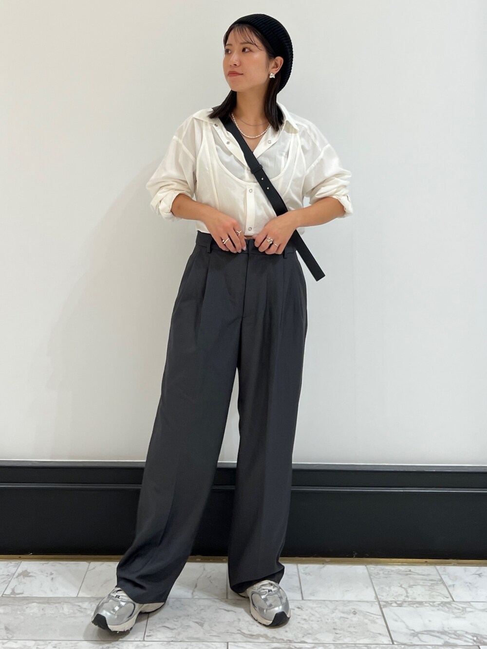 \\ instagram → @momoka_segawa_ // 秋のモノトーンcode🎵 《SHIRT》 一癖ある2wayデザインが 着るだけで一気にお洒落見え🌟 私は、裾を肩のホックにかけて ショート丈で着る方が好きです🫶🏼 くたくたっと柔らかい生地感なので カジュアルにも着やすい1着👔 《BOTTOMS》 ローウエストが今季っぽい💫 タックパンツが入荷♡ セットアップで着れるジャケットも ご用意ございます🙋🏼♀️ ベルトでぎゅっと縛ると ハイウエストにも出来ます🤝🏼
