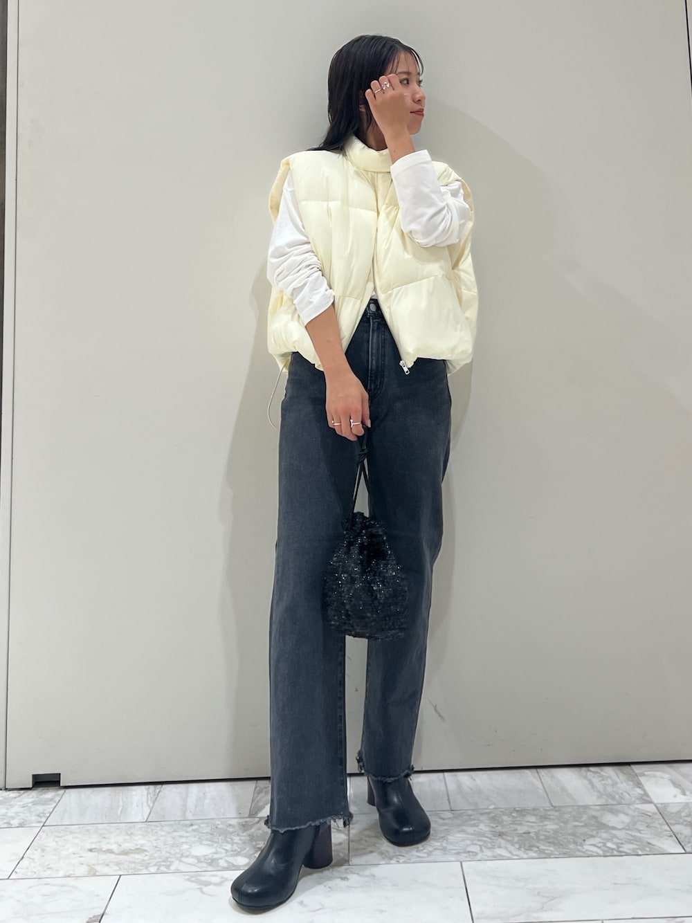 \\ instagram → @momoka_segawa_ // ベストcode♡" 《VEST》 中綿のショートベスト✨ 今季らしいショート丈が 着るだけでお洒落見え間違いなし✊🏼♡ 中綿なので、すっごく軽くて 程よいボリューム感💯 首元のボタン閉じて ハイネックにもなるので 寒くなってもマフラーいらず✌︎✌︎ 脇の開き具合も広いので スウェットや分厚いニットに レイヤードも出来ます🌟 《DENIM》 小柄さん全員に履いてほしい!! 短丈で細めのdenimです👖 ブルーは綿100% ブラックは綿96% ポリウレタン4% の素材違いで、 ブラックかなりストレッチ効いてます✊🏼 ブルーはストレッチ入ってないけど ちょっと入ってる?ってくらい柔らかい😂 いつものテーパードより ストレートのシルエットに近いです🙏🏼 脚長効果を更に狙うなら 厚底のスニーカーや、サイドゴアブーツ ヒールのあるシューズで 是非合わせてください🎶
