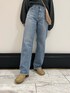 瀬川百花(Ungrid)のデニムパンツ「ハイウエストルーズテーパードデニム」を使ったコーディネート
