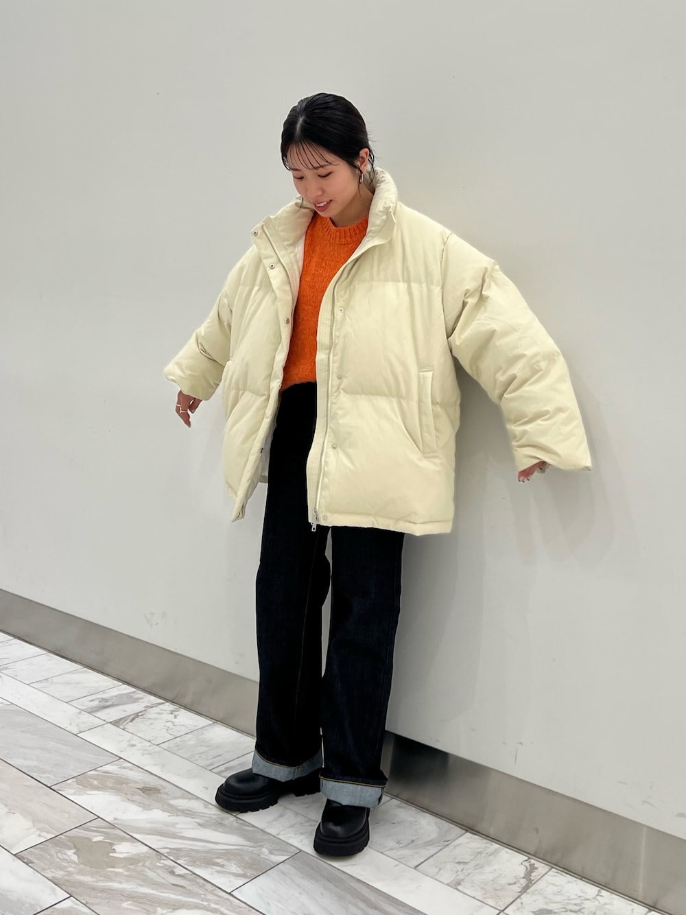\\ instagram → @momoka_segawa_ // 白ダウンコーデ☃️ 《OUTER》 昨年よりもブラッシュアップされた Ungridのダウン☃️ 昨年よりボリューム感が スッキリしています🙏🏼 光沢感を抑えていることで高見え◎ スポーティーになりすぎないので、 スカートコーデにもマッチします🌟 ダウン75%入っているので、 もちろん防寒性は抜群!!🔥 この素材で、この価格は ほんっとにないです!🔥 ハイネックの首元も、 ボタンを閉じればマフラー代わりに🧣 《KNIT》 昨年、大人気すぎてカラー欠けや 完売していたモヘア混ニットが、 今年は新色も加わって入荷致しました✌︎✌︎ 暖かいのに蒸れにくいモヘア素材は 肌触りも良くウールに比べて、 チクチク感も少なく 素肌の上に着て頂きやすいので、 秋〜春にかけて長く愛用して頂けます🙆🏼♀️💓 私は、ニットがチクチクして 肌が痒くなるのですが このニットは素肌の上に着てます🧶 《DENIM》 個人的に、おすすめすぎるdenim♡ ルーズなシルエットながらも 締まるところは締まって(ウエスト) 丈感も長めなので足長効果◎ インディゴは裾折り返して ブーツ合わせもオススメです🙏🏼 156cmの私で、 ブルーはスニーカーでも 裾つかないので ブルーの方が丈感短めです👖 インディゴは綺麗め、 ブルーはカジュアルめな印象に…💓