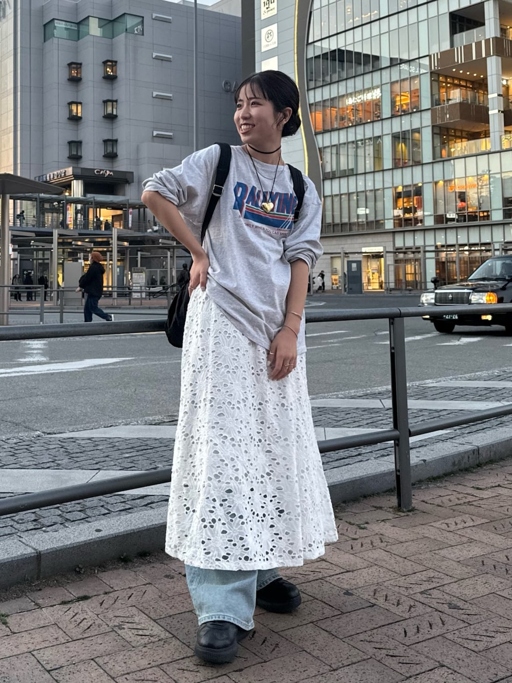 \\ instagram → @momoka_segawa_ // 春のカジュアルcode☘️ 《TOPS》 前から見ても後ろから見ても可愛い♡ ヴィンテージロゴが、Ungridらしくて カジュアルなスタイリングに ピッタリです🐶! お尻すっぽり隠れる長めの丈感ですが サイドスリットが入っているので 野暮ったくならずにスッキリ 見せてくれます👍🏼 《SKIRT》 レース素材のスカートが 春らしく可愛い1着🌸 マーメイドの形でスタイルUPに◎ 156cmで折らずに履くと くるぶしくらいの丈感です👍🏼 denimを見せたかったので 写真の時は2回折り返しています🙌🏼 《DENIM》 この春、私的イチオシdenim 👖 お問い合わせも多かった ワイドデニムが入荷いたしました👏🏼 とにかくカラーが可愛い💓!! ヴィンテージ感が 他のブルーデニムに比べて よりしっかり出てて 春夏、大活躍間違いなし✊🏼 ハイウエストで 後ろポケットの位置も高いので 脚長効果抜群ですよ🫢♪