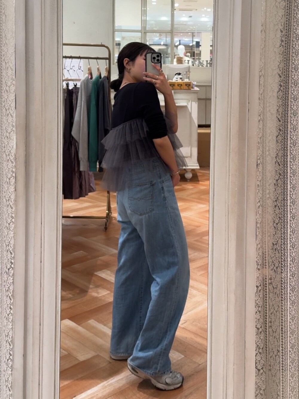\\ instagram → @momoka_segawa_ // 出勤コーデ🧥 《OUTER》 ステンカラーコートは、 お袖が腕3本余裕ではいるくらい ゆったりしているので、 お袖にボリュームのあるトップスも 余裕でスッと通ります🤝🏼💓 着ていくうちに 腕周りのハリ感がくたっと 落ち着いてくるので、 サイズ感でお悩みの方は、 丈感でお選び頂くのがオススメです◎ 《TOPS》 STAFFほぼ全員購入したと言っても 過言ではないくらい 全STAFFいちおしのシアーロンtee✊🏼 綿100%の素材で しっかりとした生地だけど 伸縮性も抜群! 着心地も抜群!💯 トップスとしてもインナーとしても 使える万能itemです🌟 アレンジで、今季トレンドの チュール素材のものをプラスすると シンプルなコーデも 一気にお洒落コーデに変身します🙌🏼 《DENIM》 オーガニックコットンで作られた、 軽くて柔らかすぎて、 本当にdenimなのかすら疑ってしまう… Ungrid史上最高の柔らかいdenimです👖 サイズ感もゆるゆるなので、 ウエストは、ベルト通しに ボタンをかけて詰めて履いて頂くか、 太めのベルトで締めて頂くのが オススメです🙆🏼♀️♪