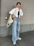 瀬川百花(Ungrid)のデニムパンツ「リメイクデザインルーズデニム」を使ったコーディネート